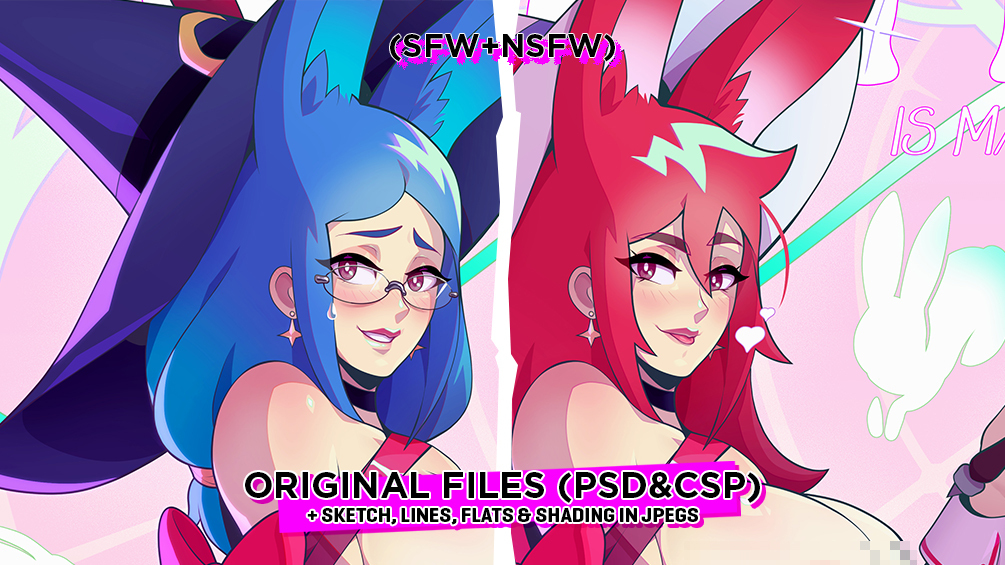 This package includes all the different steps (from sketch to finish) and the original file for both drawings (SFW+NSFW) in the original CSP format and a converted PSD.